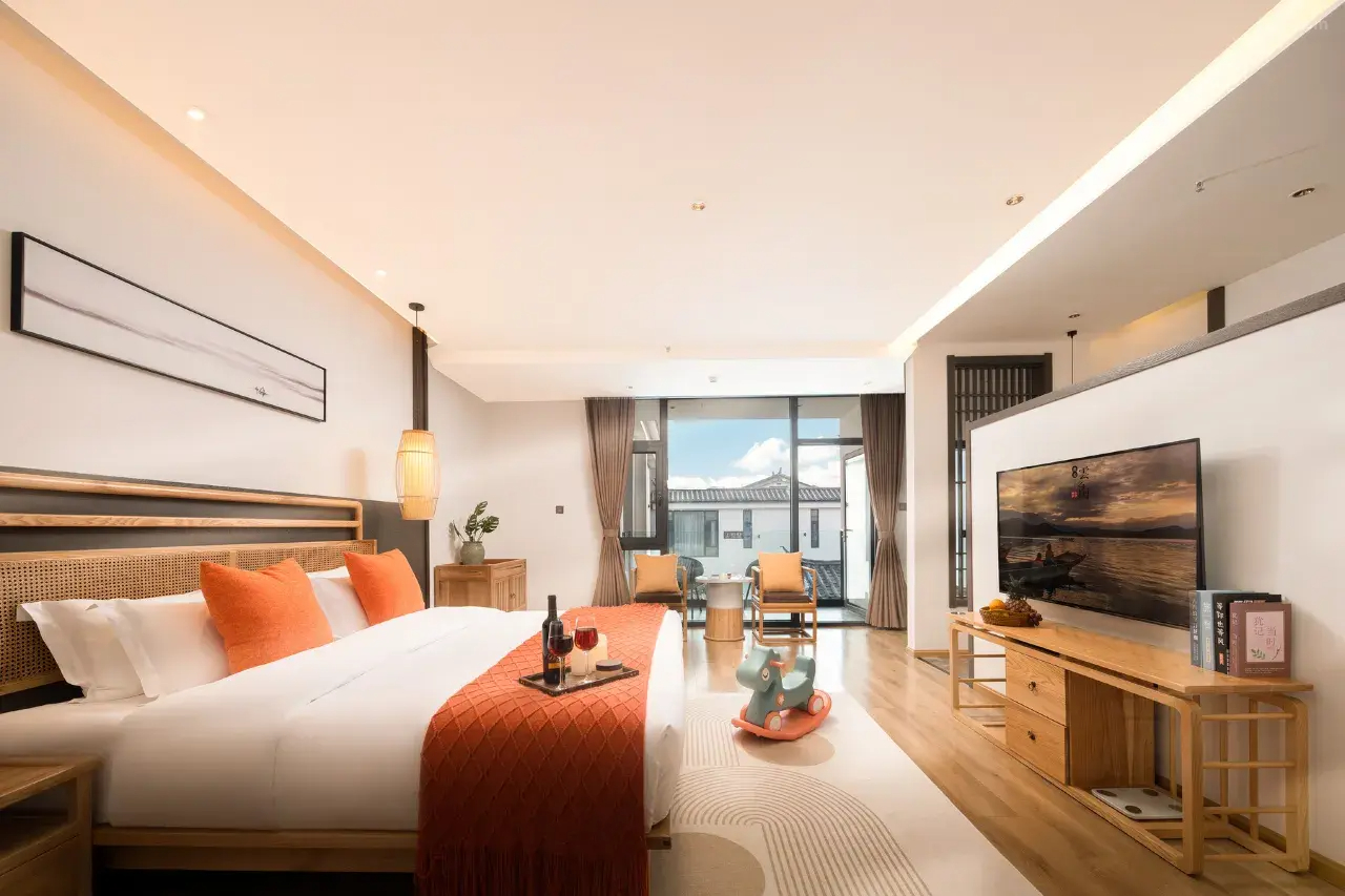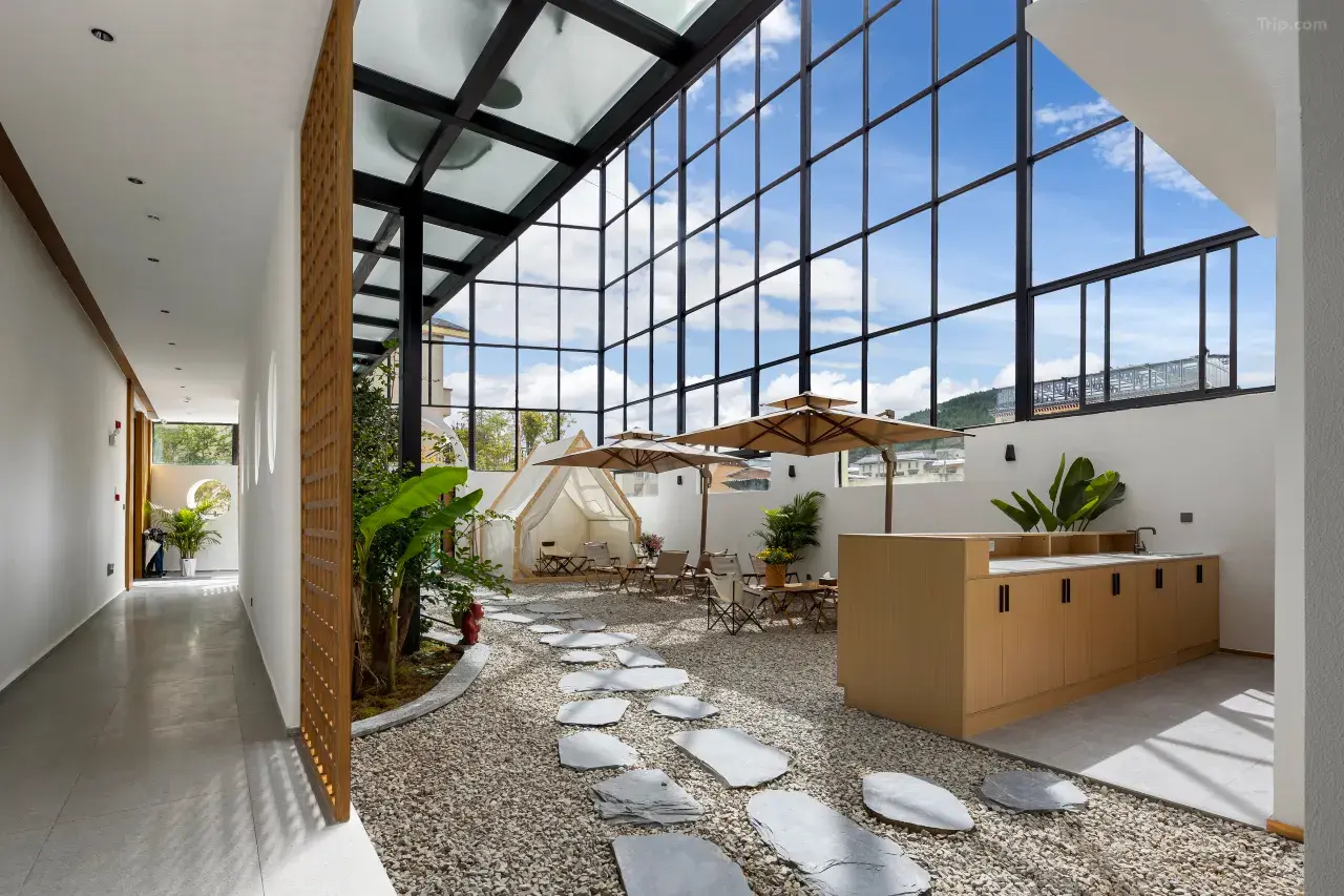 開業於2021年,樓頂擁有麗江古城稀缺的空中觀景大花園,可觀麗江古城夜景,可看日出,大露台上有網紅天空之鏡、吊椅、多肉博物館等,可以免費提供美服拍照,紅裙、藍天、白雲唯美的拍攝空間。