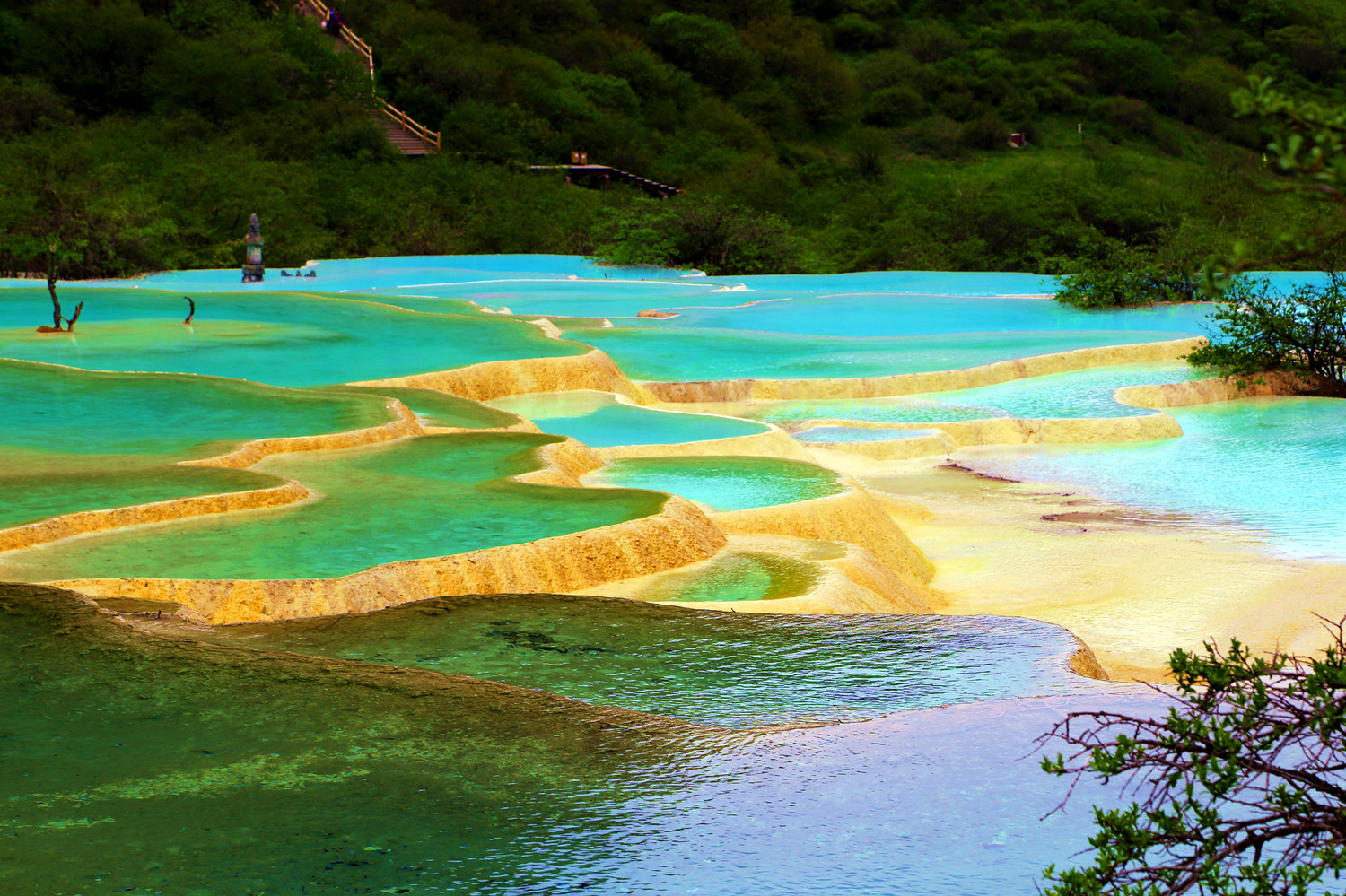 世界自然遺產,以鈣華彩池、雪山、峽谷與森林景觀聞名。核心景點「五彩池」由數百個階梯狀鈣華池組成,池水因礦物質呈現黃、綠、藍等斑斕色彩,宛如瑤池仙境。景區還有古寺、瀑布點綴,生態原始,景色壯麗。