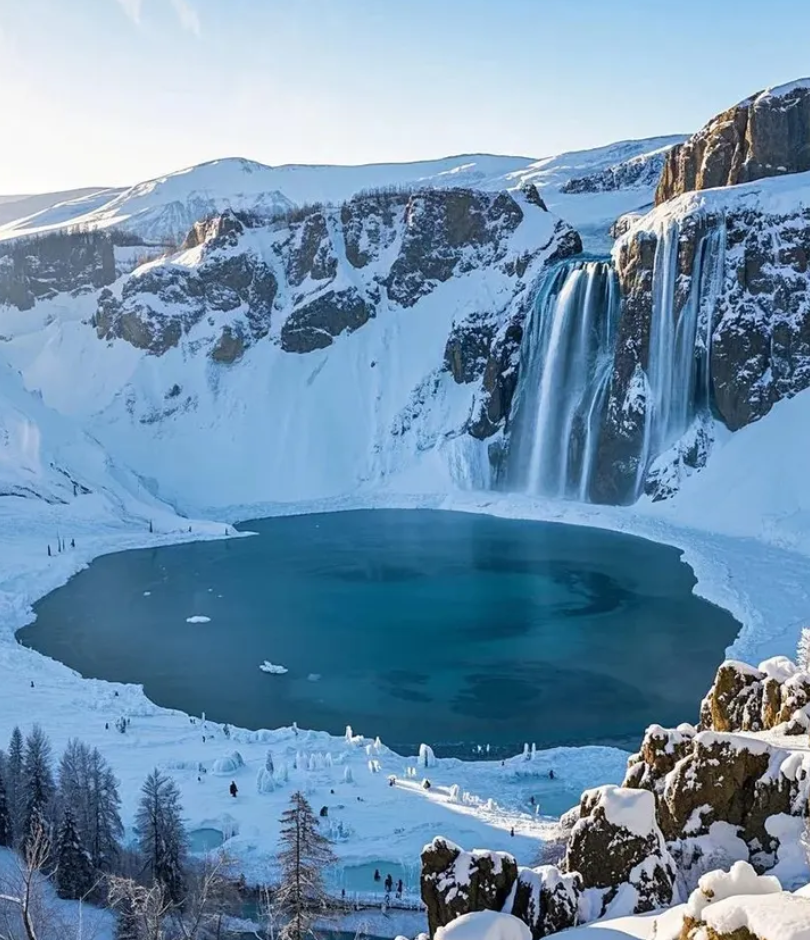 冬季的鏡泊湖,將流動的壯麗瞬間凝固。曾經奔騰不息的吊水樓瀑布,在嚴寒中定格為一座高達20餘米的巨大冰瀑,如同懸掛在斷崖之上的琉璃屏風,晶瑩剔透,在陽光下折射出耀眼的光芒。這片冰封的湖面,不僅是觀賞冰瀑的絕佳舞台,更是體驗千年漁獵文化的活態博物館。