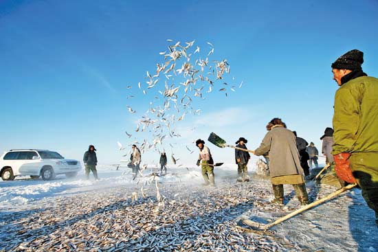 東北地區最具特色的冬季活動之一,漁民在冰封的湖面上鑿冰、下網、收網,看鮮魚躍出水面的瞬間,體驗漁獵文化*。