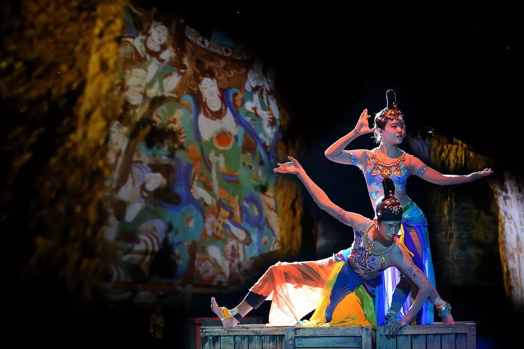 《又見敦煌》是甘肅敦煌一部大型室內情境體驗劇,該劇融合了敦煌的歷史、服飾與樂舞文化,採用獨特的「流線式」空間體驗方式,讓觀眾在迷宮般的劇場中行走觀演,身臨其境地穿越於莫高窟壁畫、藏經洞與絲綢之路的歷史場景之中。演出為遊客提供了一場穿越千年、感受絲路繁華與敦煌文化魅力的沉浸式盛宴。