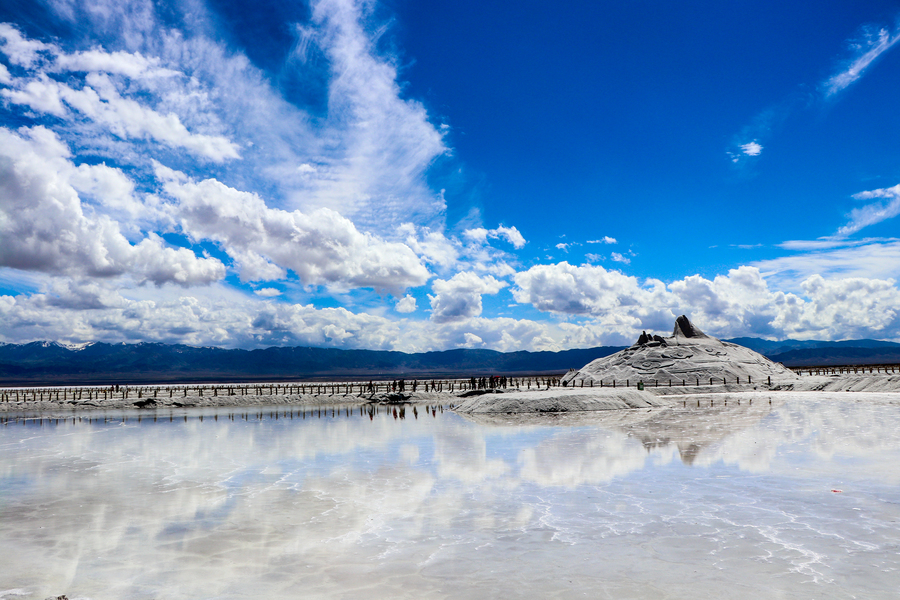 「茶卡」是藏語,意即鹽池。茶卡鹽湖四周雪山環繞,湖面平靜如鏡,反射著美麗的天空景色,被譽為「中國的天空之鏡」。