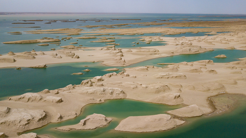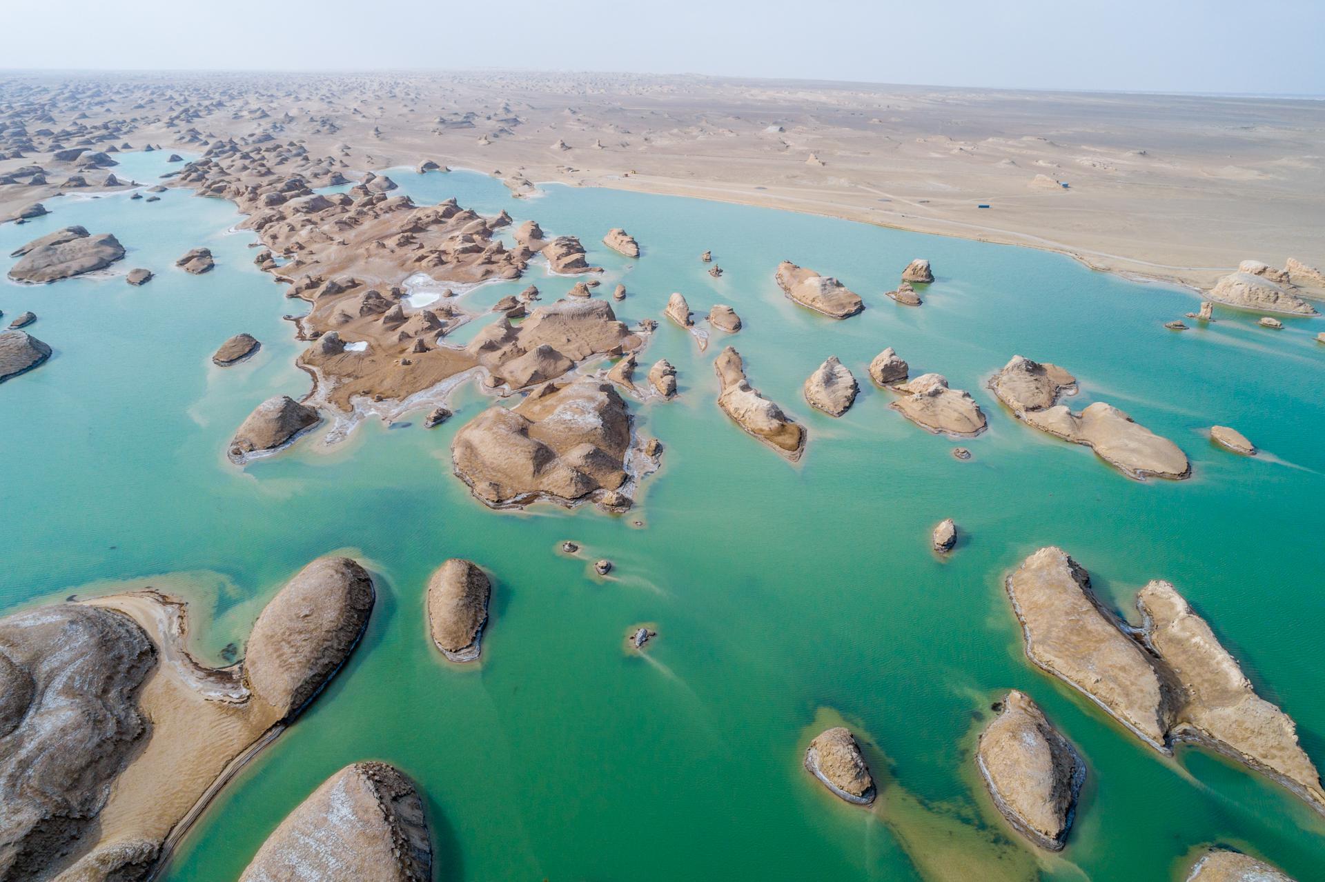 位於青海柴達木盆地腹地,是世界唯一的水中雅丹地貌。碧藍湖水與形態各異的土丘交織,宛如戈壁中的碧玉。
