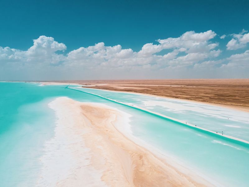 東台吉乃爾湖是位於青海省海西蒙古族藏族自治州格爾木市柴達木盆地內的一個硫酸鎂亞型鹽湖。湖面海拔約2681公尺,面積達121.3平方公里,湖水普遍較淺,水深在0.6至1公尺之間。這裡的湖水因富含鋰鹽等礦物質,呈現出獨特的藍綠色調,在夏秋季節景色尤為絢麗。