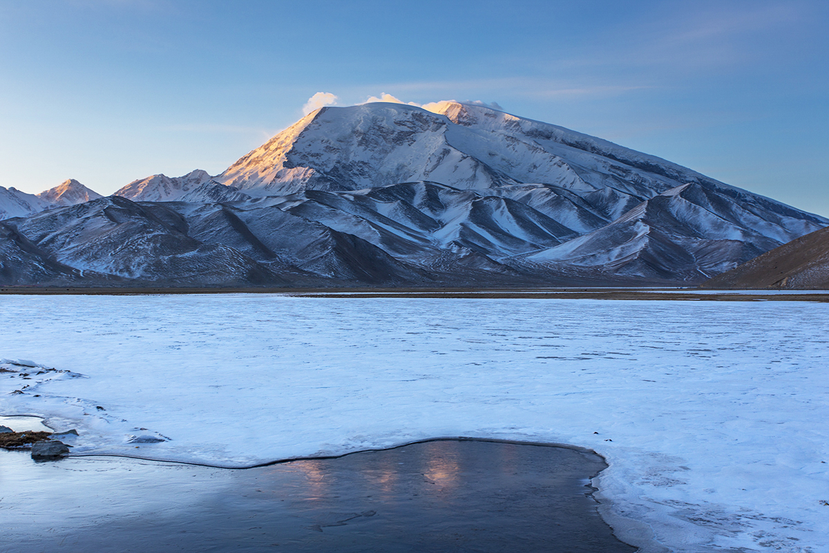 被譽為「冰山之父」,海拔7546公尺,是帕米爾高原的重要地標。山體雄偉,冰川廣布,其倒影常常落在腳下的喀拉庫勒湖中,景色壯麗非凡。