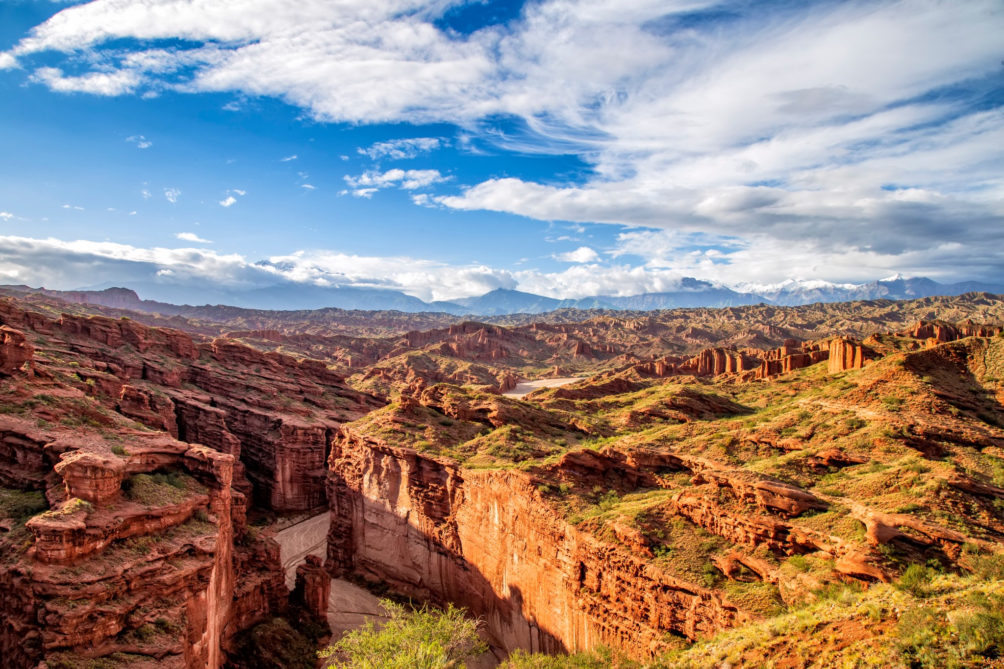 又稱托木爾大峽谷,擁有壯觀的雅丹地質地貌。峽谷由億萬年風雨侵蝕而成,紅色的岩層起伏,色彩斑斕,線條奇特,置身其中,彷彿漫步於外星地表,是攝影愛好者的天堂。
