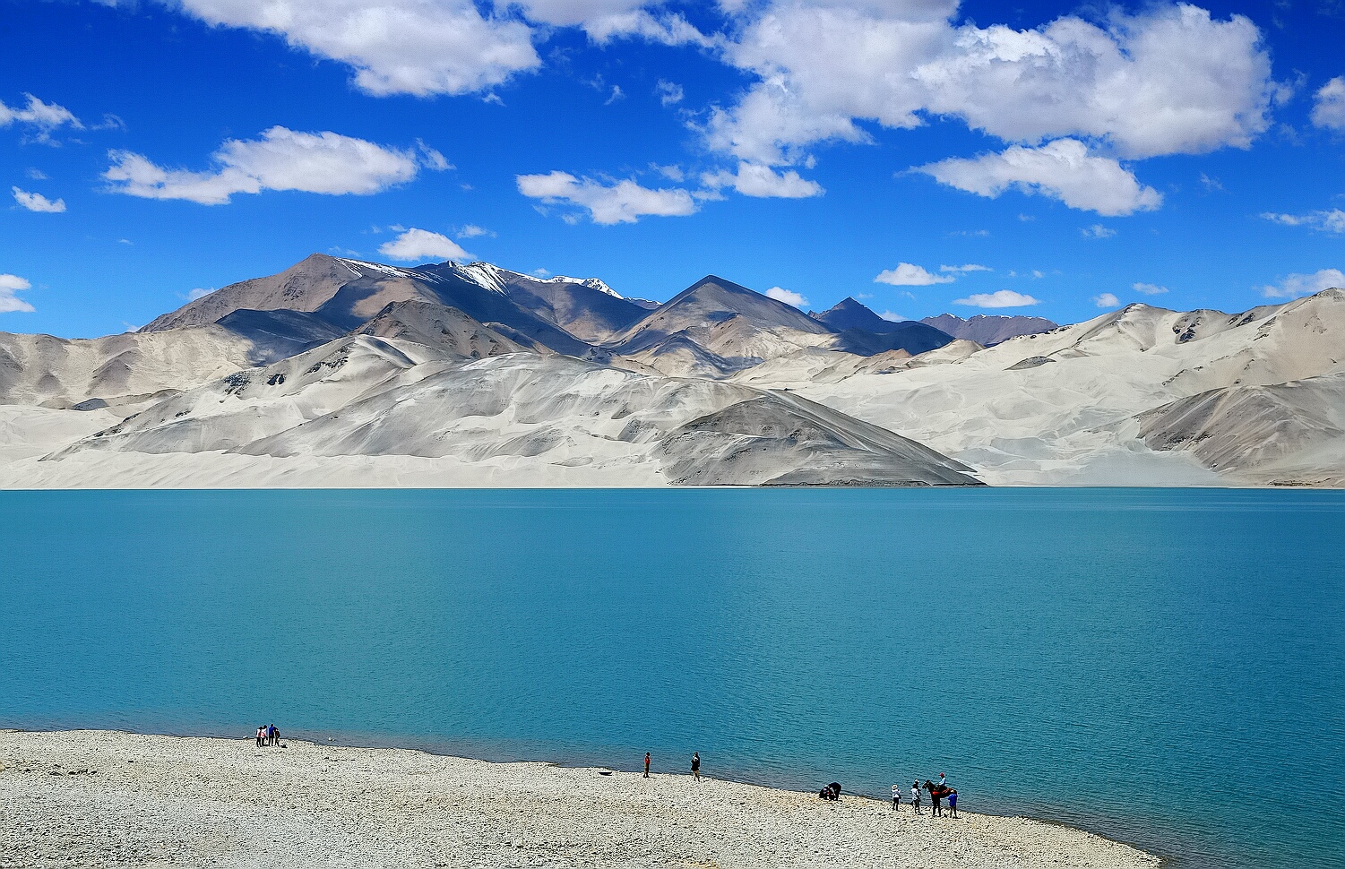 位於帕米爾高原阿克陶縣,湛藍的湖水與銀白色的沙山相映,雪山環繞,景色純淨而神秘。它是314國道上的經典景觀,湖面如鏡,白沙山在陽光下閃爍,與湖水的藍構成一幅簡約而震撼的畫面,是前往帕米爾高原不可錯過的拍照聖地。