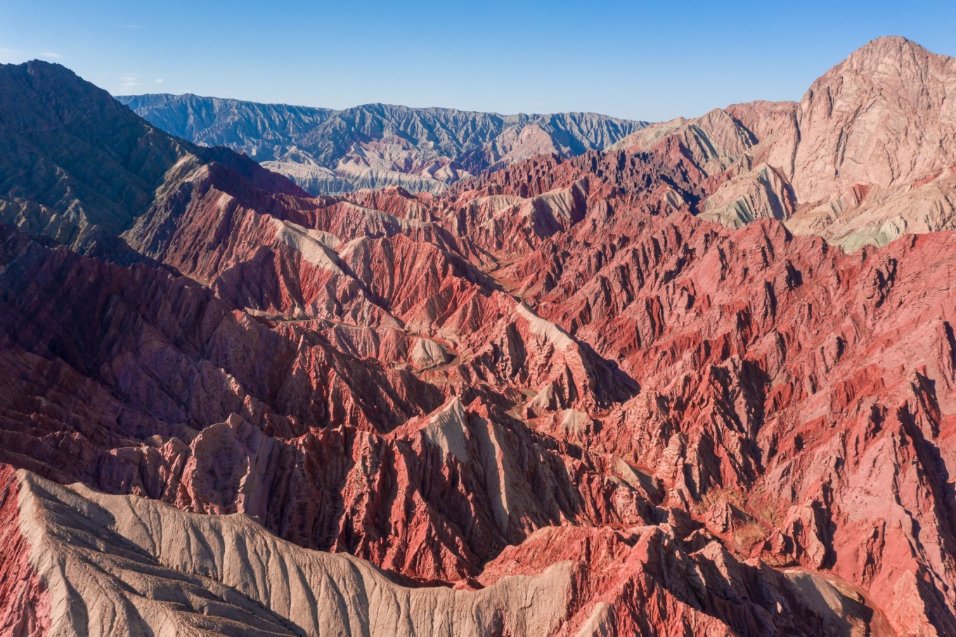 紅山氣泡峽谷(也稱奧依塔克紅山谷)位於奧依塔克河與蓋孜河交匯處,是崑崙山脈與天山山脈的分界點。這裡的山體因富含氧化鐵元素而呈現層次豐富的火紅色,其最顯著的特徵是岩壁上遍布著無數氣泡狀的孔洞。這些獨特的地質奇觀是長期地質運動和風雨侵蝕共同作用的結果。峽谷綿延一公里多,幾乎寸草不生,造型奇異的紅色石壁與山體上流淌的白色溶鹽痕跡形成強烈對比,營造出極具視覺衝擊力的魔幻景觀,被譽為「南疆火焰山」,甚至比吐魯番火焰山的顏色更為鮮豔,為攝影愛好者提供了絕佳的創作背景。