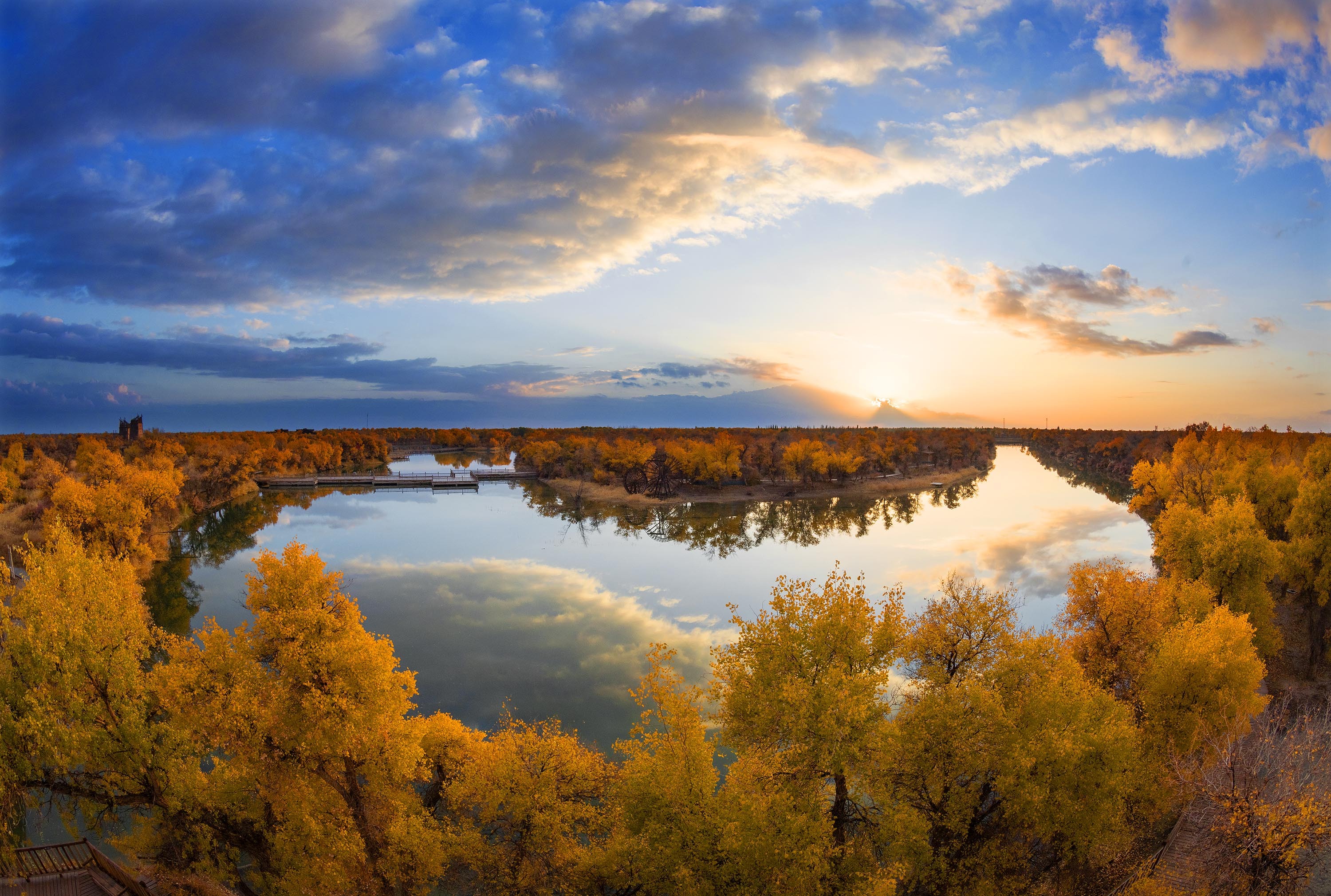 澤普金湖楊國家森林公園位於澤普縣西南方,坐落在葉爾羌河沖積扇上緣,三面環水,景色宜人。景區占地面積達4萬畝,其中天然胡楊林面積約2萬至3萬畝,遠處映襯著巍巍崑崙山,自然景觀壯麗。它在2013年成為南疆首個國家級5A景區,享有「梧桐天堂、胡楊水鄉」的美譽。這裡是欣賞胡楊林與水域交織的獨特生態畫卷,感受西北地區高森林覆蓋率清新氣息的理想之地。