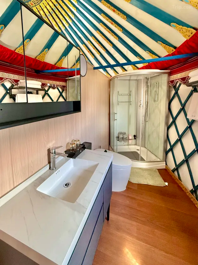 內蒙古黑山頭鎮,是體驗草原風情的理想之地。這家蒙古包客棧巧妙地融合了傳統遊牧特色與現代舒適設施。建在草原之上,住在傳統的毛氈蒙古包裏,原汁原味的遊牧生活,儘管外觀傳統,但包內配備了幹濕分離的衛生間、空調和Wi-Fi等現代設施,確保了住宿的舒適與便利。