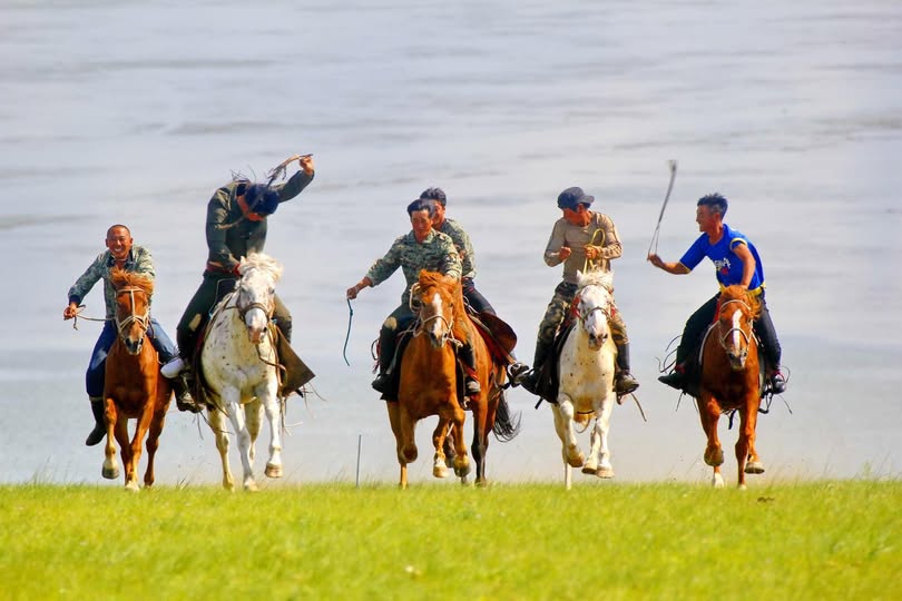 「馬之舞」是巴爾虎蒙古部落呈現的一場大型、震撼的馬上競技表演,淋漓盡致地展現了「蒙古馬」的精神與魂魄。表演由專業的馬術團隊攜百騎馬匹出演,內容融合了套馬、賽馬、博克(蒙古式摔跤)等傳統項目,以及馬鐙藏人、馬上拾物、飛身躍馬、騎乘射箭、馬上飛燕等十幾項高難度馬術技巧。這場表演以草原為根、以馬者為魂,生動演繹了人馬合一、人馬共舞的壯美畫面,是感受蒙古族豪邁氣概與深厚馬背文化不可錯過的視覺盛宴。