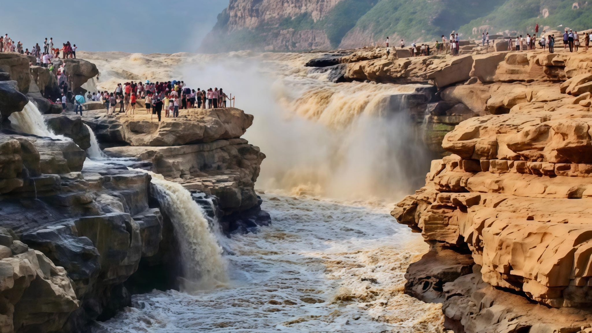 壺口瀑布位於山西吉縣與陝西宜川縣交界處,是世界最大的黃色瀑布。黃河至此,數百米寬的河面驟然收縮至數十米,河水以排山倒海之勢墜入深槽,聲如雷鳴,水霧升騰,形成了「千里黃河一壺收」的奇觀。它氣勢磅礴,四季景色殊異,尤其以「晴空灑雨」「壺底生煙」等八大景觀聞名。