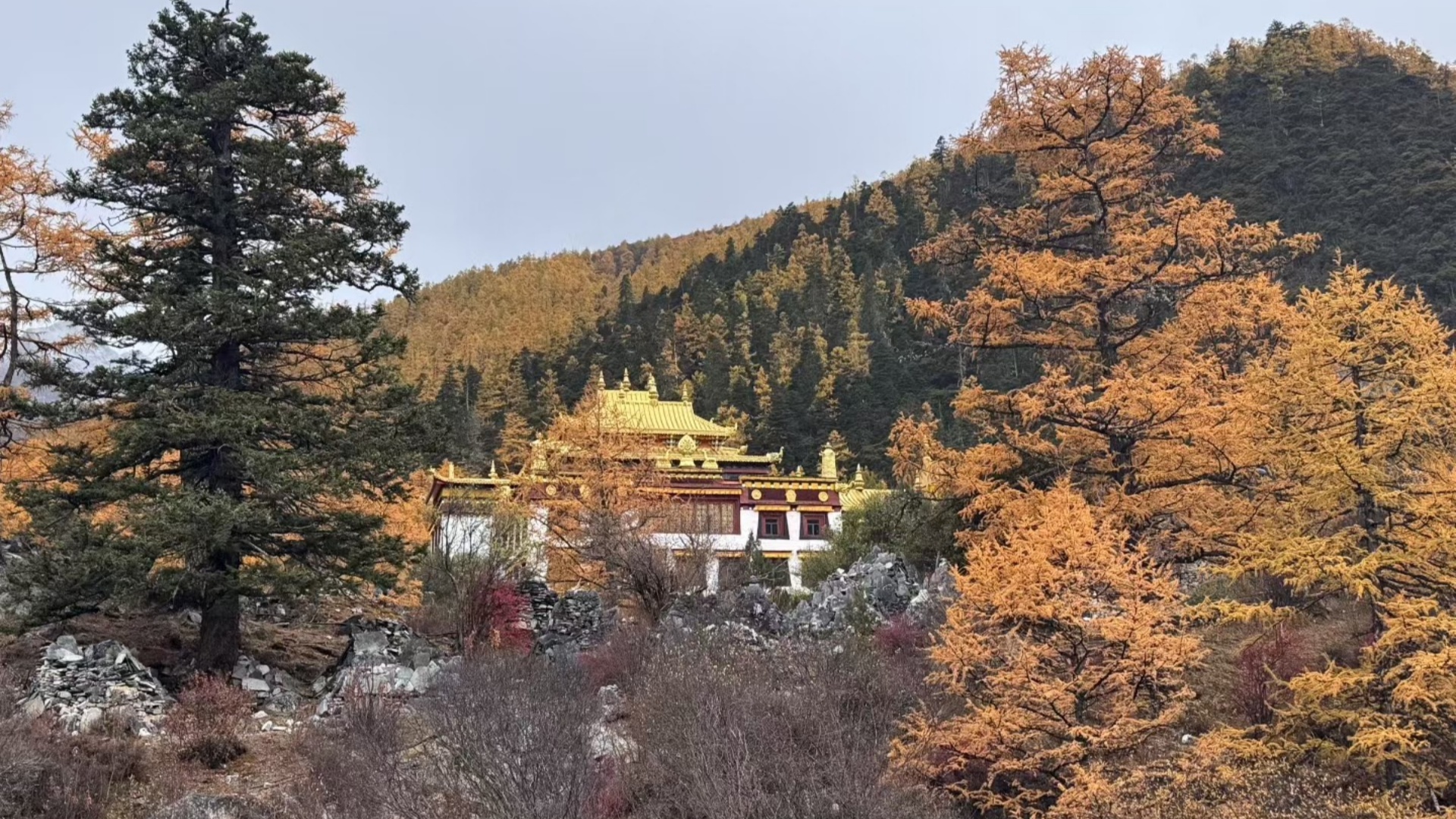 新都橋是川藏線上的一個小鎮,位於318國道川藏南北線的分叉路口。無垠的草甸,曲折的溪流,金黃的秋葉,山坡上大片牛羊在安詳的覓食,遠處散落著幾簇藏族村寨,號稱「攝影家的天堂」。