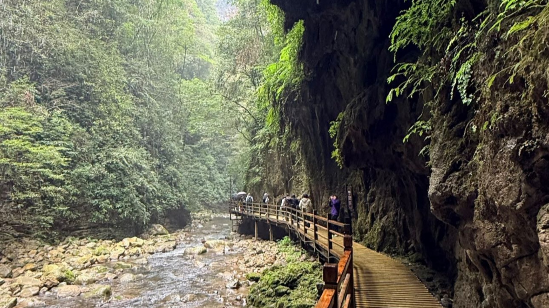 峽谷裡植被繁茂,空氣清新,涼爽舒適,溪水上瀰漫著一層薄霧,宛如來到世外桃源,讓人煩惱頓消。