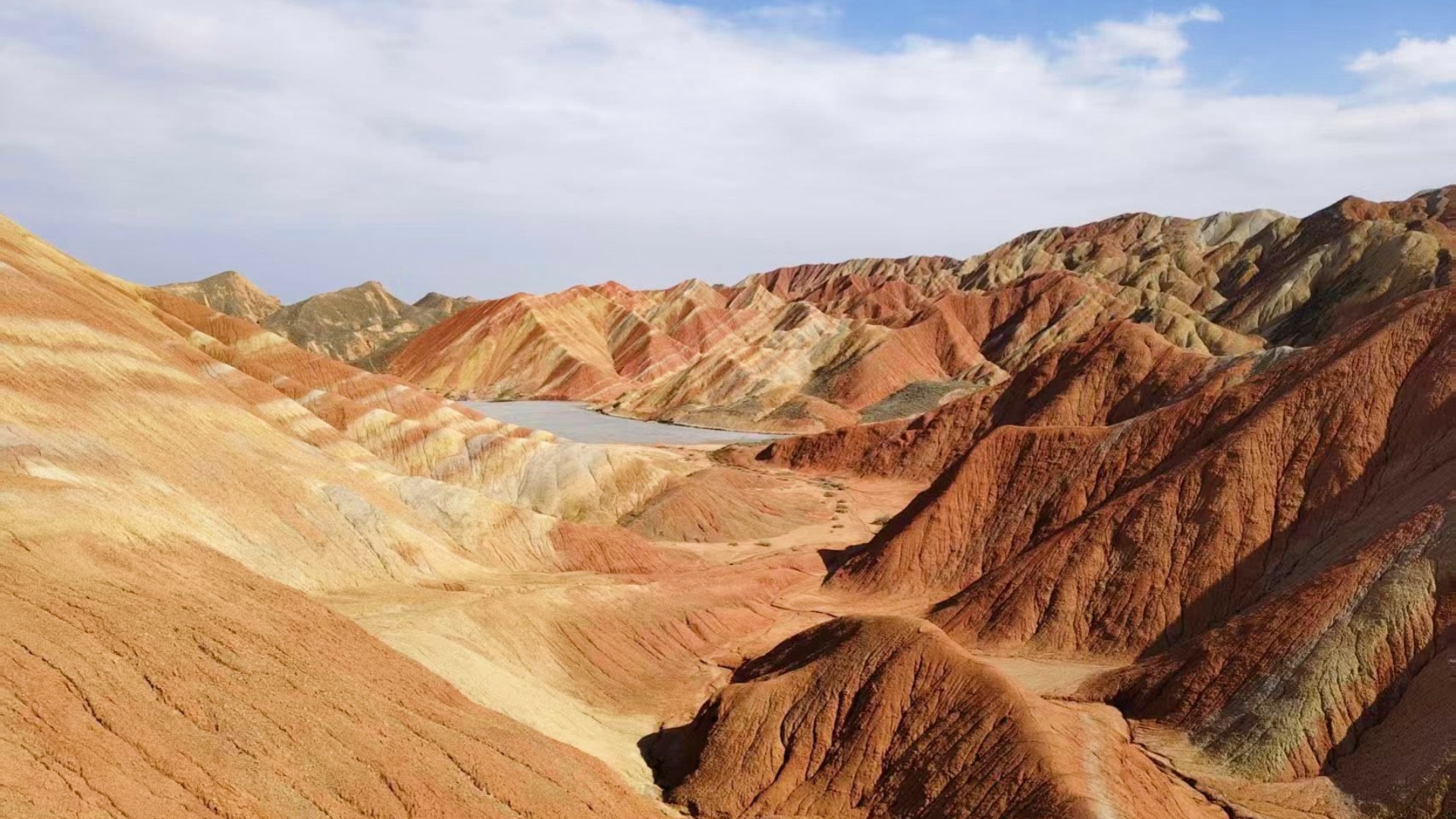 張掖七彩丹霞是中國色彩最斑斕的丹霞地貌,紅、黃、橙、綠、白、灰等色帶交織,猶如大地調色盤。其窗櫺狀、宮殿式的地質形態,被專家譽為「丹霞地貌精品中的精品」。