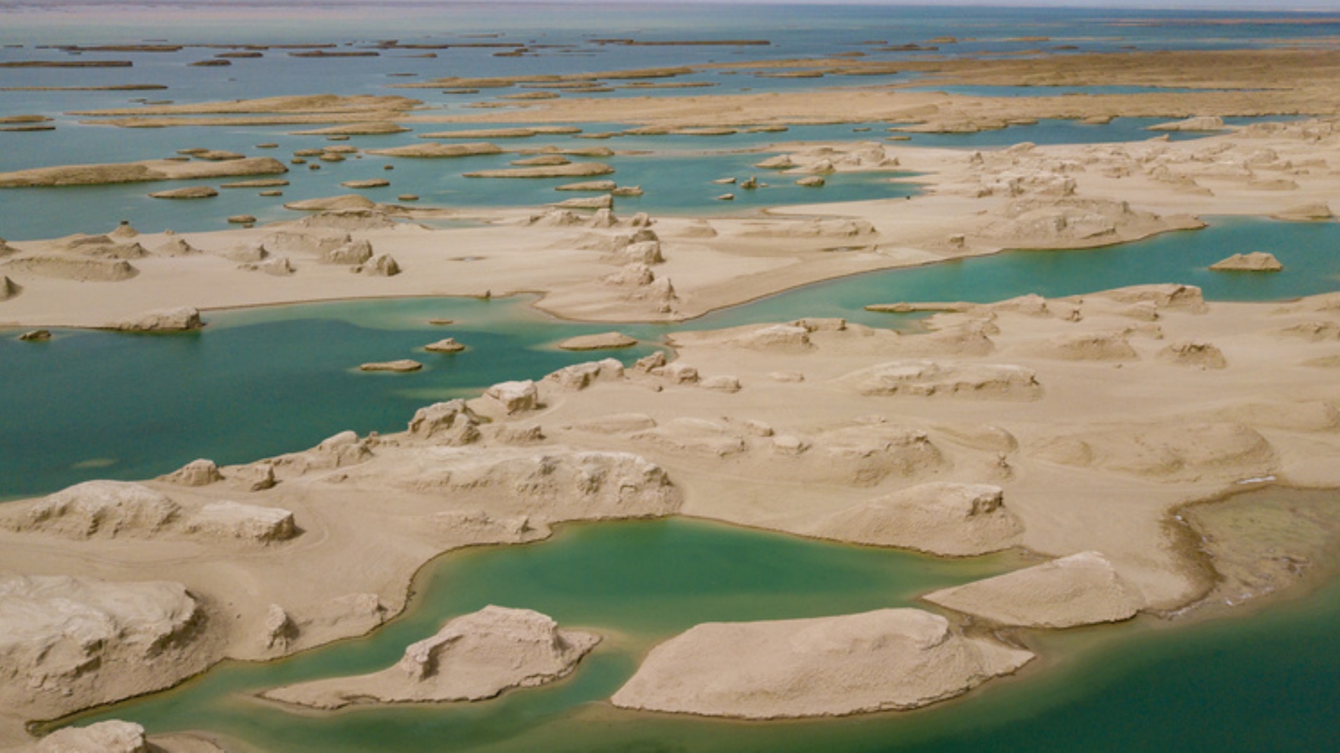 位於青海柴達木盆地腹地,是世界唯一的水中雅丹地貌。碧藍湖水與形態各異的土丘交織,宛如戈壁中的碧玉。