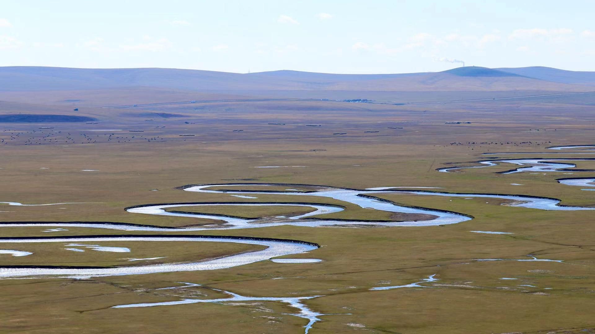 【莫爾格勒河】 被老舍先生譽為「天下第一曲水」的莫爾格勒河,河水蜿蜒流淌,隨處可見蒙古包,牛羊成群在河邊飲水。